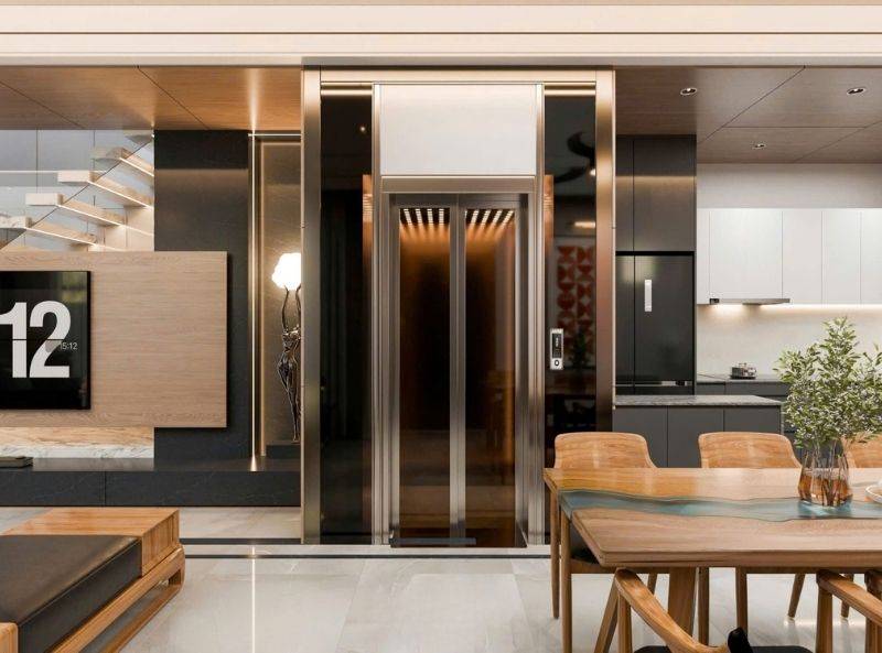 - Thang máy kính (thang máy quan sát): tạo điểm nhấn sang trọng và mở rộng tầm nhìn cho không gian sống.